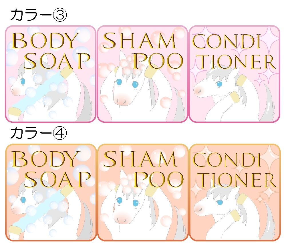 ってことで、バスルームのボトルに貼るステッカー、3枚セットが出来ました(*´∇`*)
