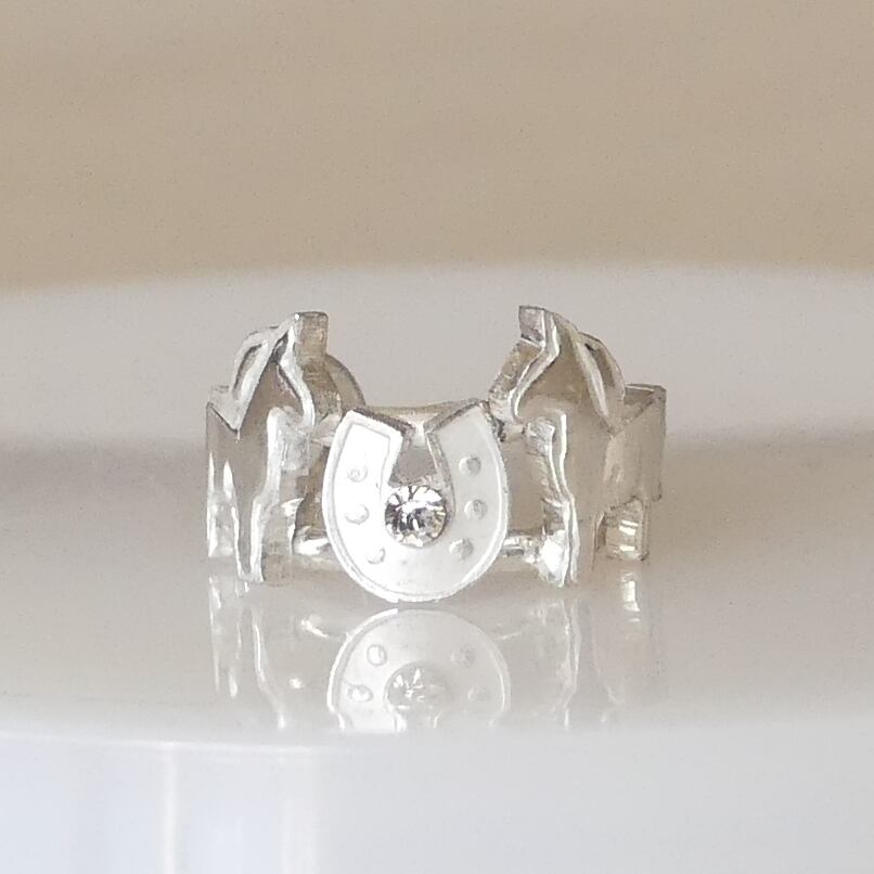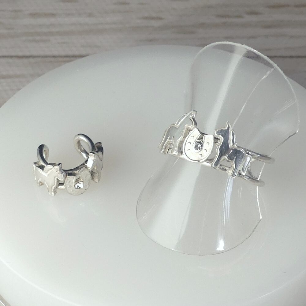 人気の【蹄鉄】を向かい合うポニーで挟んだフリーサイズリング、又はイヤーカフ