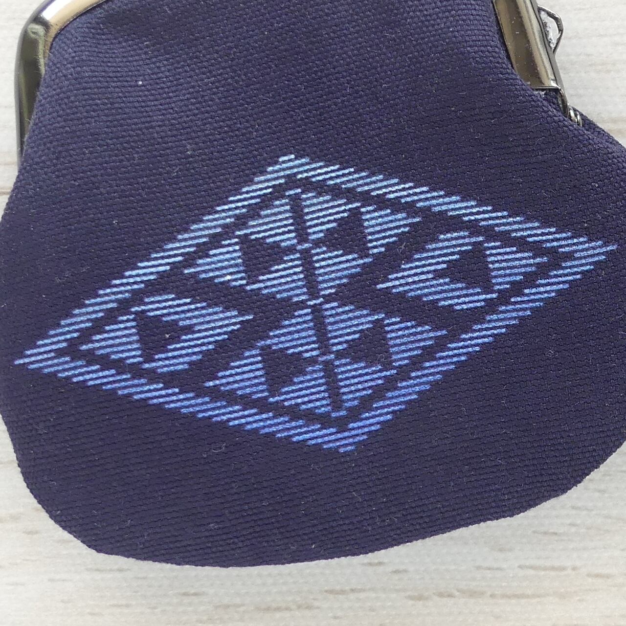 日本三大刺し子 の一つ、北東北・南部地方に伝わる #南部菱刺し という刺し子(刺繍)の図案「#うまのまなぐ」をモチーフにしたがま口。