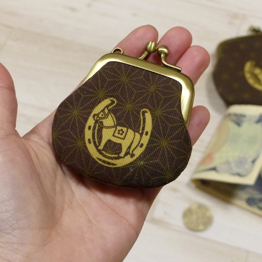 ★Fuku~ふく~オリジナルファブリック★ 500円玉も収まるサイズ がま口口金幅 5.5cm ※他のサイズは別ページよりお求めください。 ※内布を指定される場合はオプションにて色を選択して下さい。 オーダー後の制作の為、在庫作品よりも納期を長く頂いております。 ※口金の色はオマカセとなっております。 【素材】 ・綿 ・口金:真鍮 ※他の作品と在庫を一にしている為、タイミングによってはお作り出来ない場合があります。 #馬 #うま #ウマ #馬好き #馬蹄 #蹄鉄 #ホースシュー #Horseshoe #UMAJO Fuku~ふく~