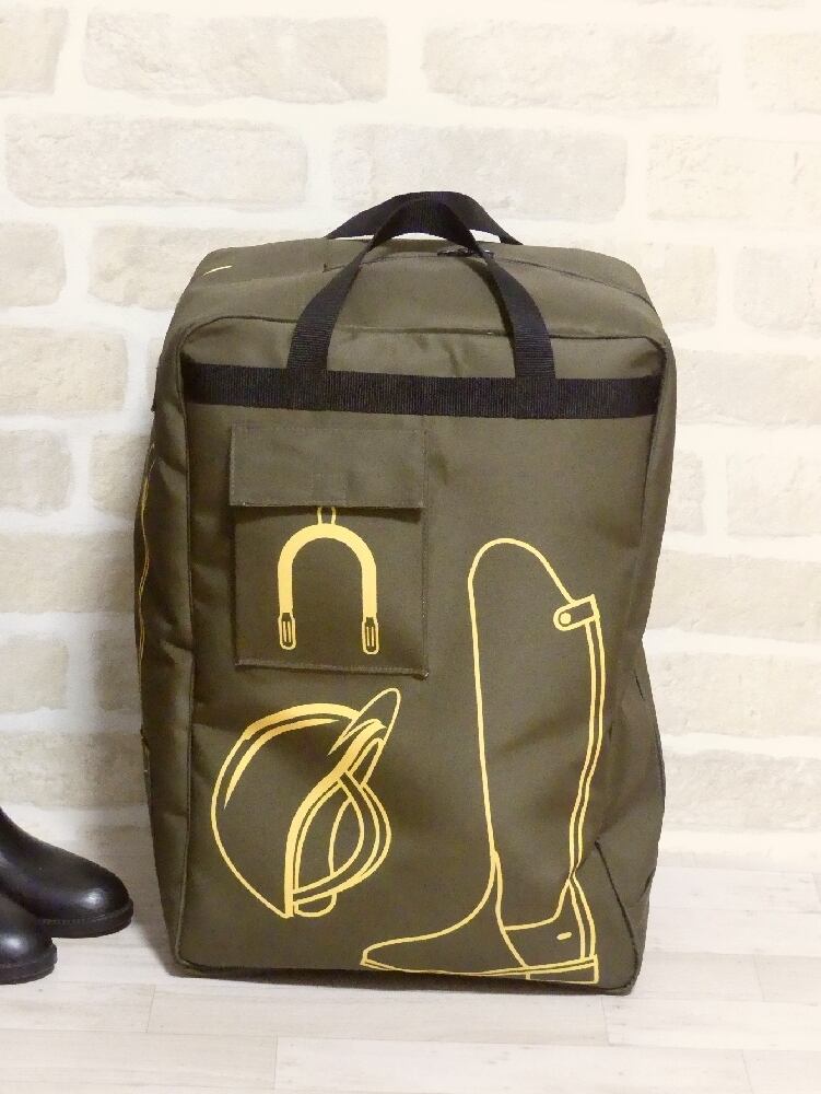レディスサイズの騎乗用ブーツ・ヘルメット・鞭・拍車など、一式持ち歩くのに、ごそっと全部入れてしまいたい!