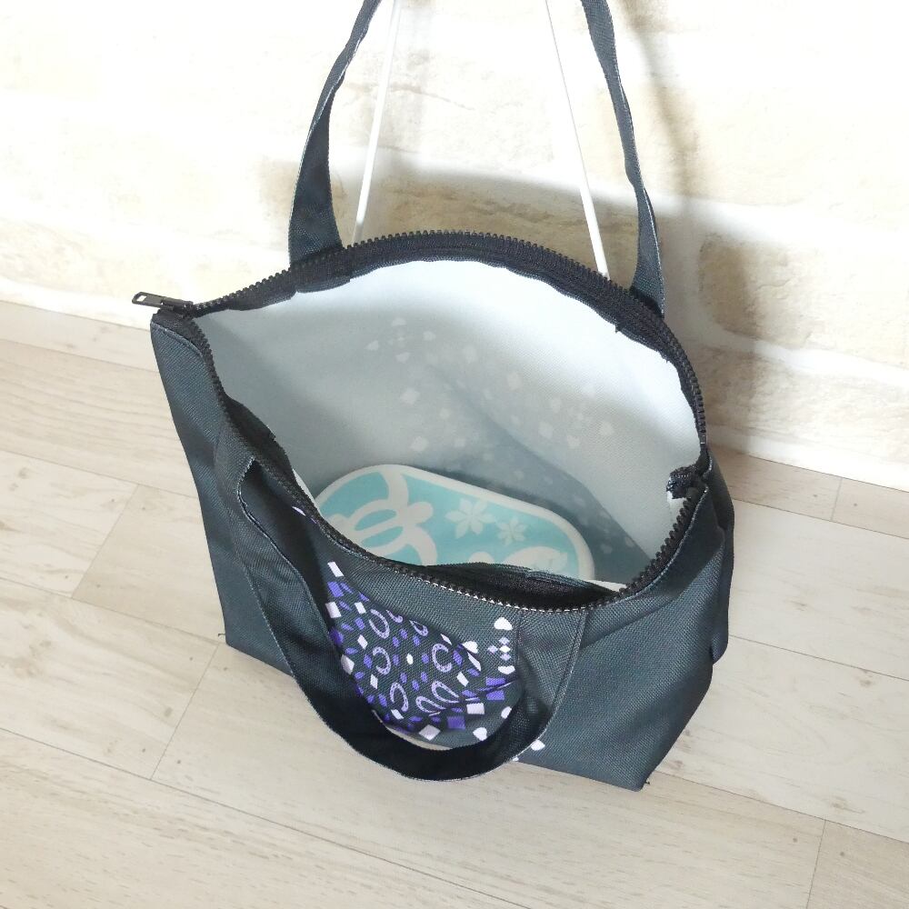 丈夫な撥水キャンバス地(ポリエステル)を使用したランチトート♪