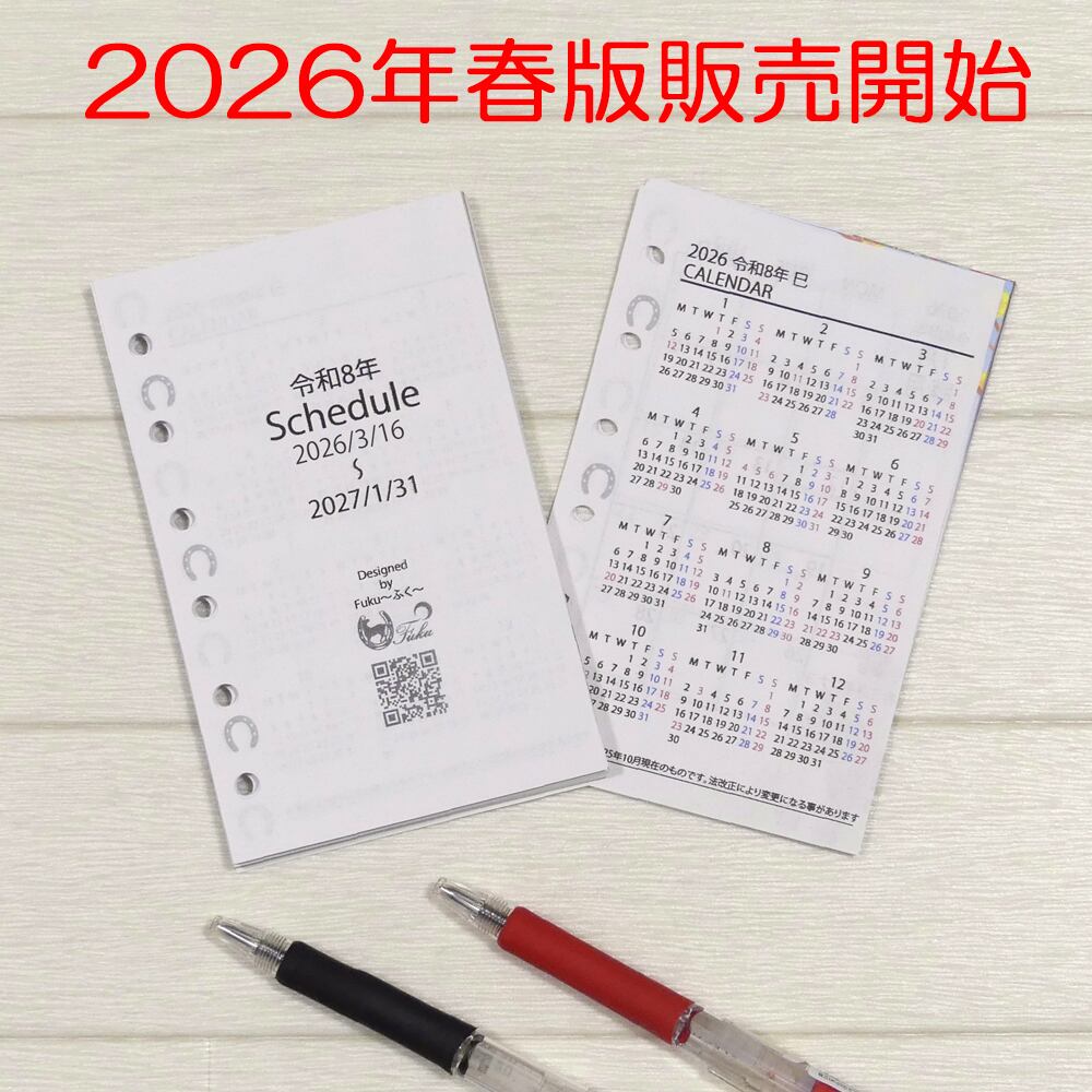 馬好き専用 システム手帳 リフィル ミニ6穴【2026年4~12月】春始まり