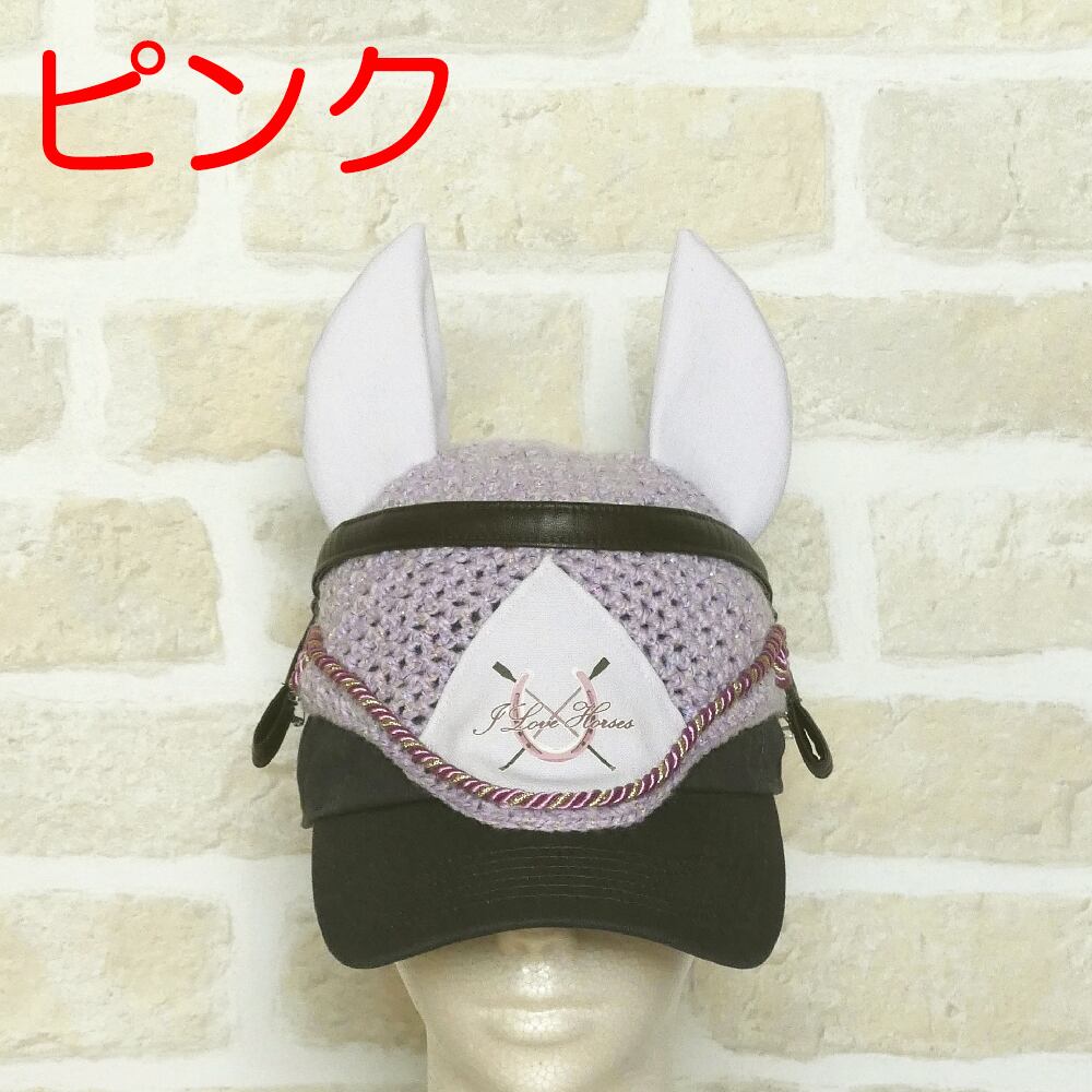 お持ちの帽子に頭絡の両端に付いているピンで留めば、お手軽にウマ耳が生やせます♪