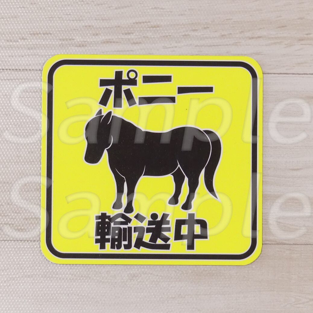 イベント出張、避暑・放牧移動など、バンなどの一般車での輸送の際車体に貼り付け、周囲への安全運転中を訴えるマグネット。