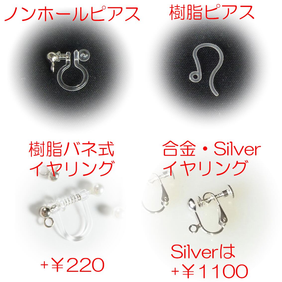 ※樹脂バネイヤリングに変更の場合別途¥220、Silver925イヤリングに変更の場合¥1100加算となります。